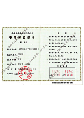 公司現(xiàn)已獲得承裝(修、試)電力設(shè)施許可證、電子與智能化工程專(zhuān)業(yè)承包壹級(jí)資質(zhì)、建筑裝修裝飾工程專(zhuān)業(yè)承包壹級(jí)資質(zhì)、消防設(shè)施工程專(zhuān)業(yè)承包貳級(jí)、安全技術(shù)防范行業(yè)壹級(jí)資質(zhì)、雷電防護(hù)裝置檢測(cè)資質(zhì)證乙級(jí)資質(zhì)、安全生產(chǎn)許可證、通過(guò)ISO9001:2015質(zhì)量管理體系認(rèn)證、ISO14001:2015環(huán)境管理體系認(rèn)證、OHSAS18001:2007職業(yè)健康安全管理體系認(rèn)證等榮譽(yù)。我們還將進(jìn)一步努力,爭(zhēng)取贏得更多的榮譽(yù)。